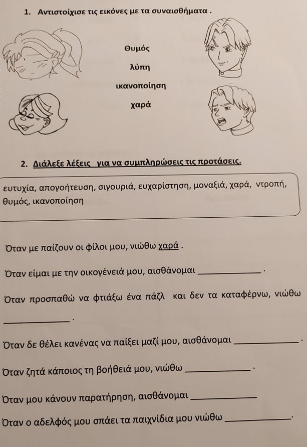 Σήμερα θα κάνουμε εργασία για τα συναισθήματα. Καλό διάβασμα!