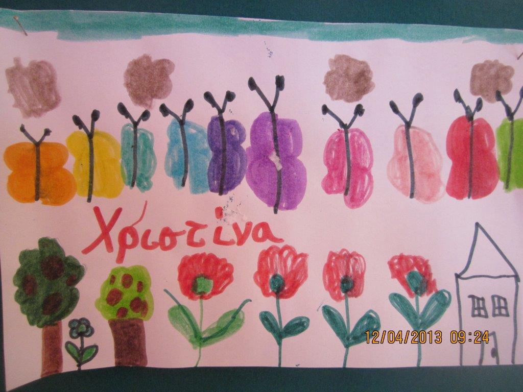 Οι πεταλούδες και τα λουλούδια είναι πάντα στις ζωγραφιές με θέμα την εποχή αυτή.